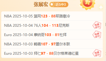 昨日NBA赛事获胜,目前5胜3。张展宏继续深挖数据,不吹不擂真实成绩有目共睹。继续为大家送上高质量和专业的赛事理解,敬请大家关注!