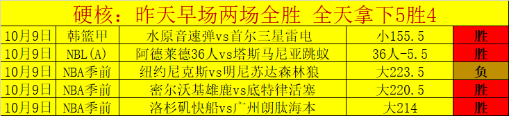 昨天早场2场全胜发挥,全天拿下5胜4。