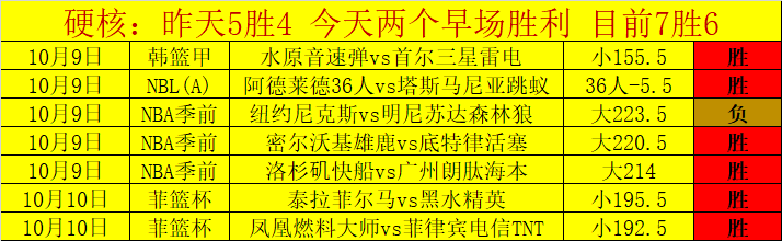 昨天5胜4,今天早场2场全胜,目前近7胜6。