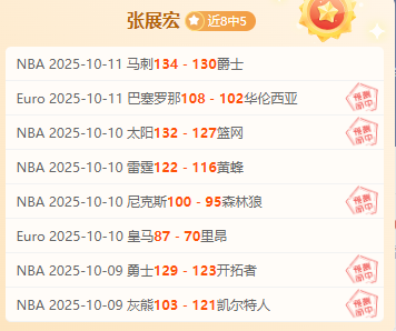 昨日双胜,NBA以及Euro各取一场。张展宏继续深挖数据,不吹不擂真实成绩有目共睹。继续为大家送上高质量和专业的赛事理解,敬请大家关注!