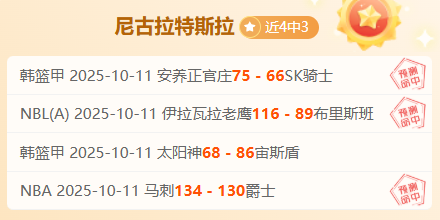 【成绩回顾】近4胜3,昨日NBA也是完美拿下胜利,今天情报数据再升级冲击连胜,尼古拉资深作者情报解读再有方法,信心强项情报解读连胜赛事再次出发,长期解读惊喜不断,此前作者创下4次双位数胜战绩,掌握着一手赛事资深情报,本期继续分享充满奇妙体育赛事,敬请大家持续关注!!