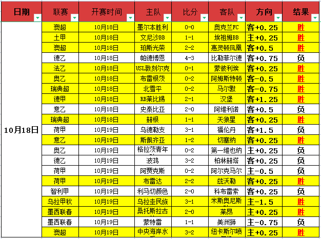 昨天表现炸裂,整体拿下21胜13净+5!昨天数据中,澳超的表现非常的炸裂,3场全部完美的大胜拿下,非常的惊人!土甲、瑞典超和乌拉甲的表现都非常的出色,都完美的打出,非常的精彩!意乙和墨西联的表现都不错!德甲的表现都非常的不错,完美的打出!