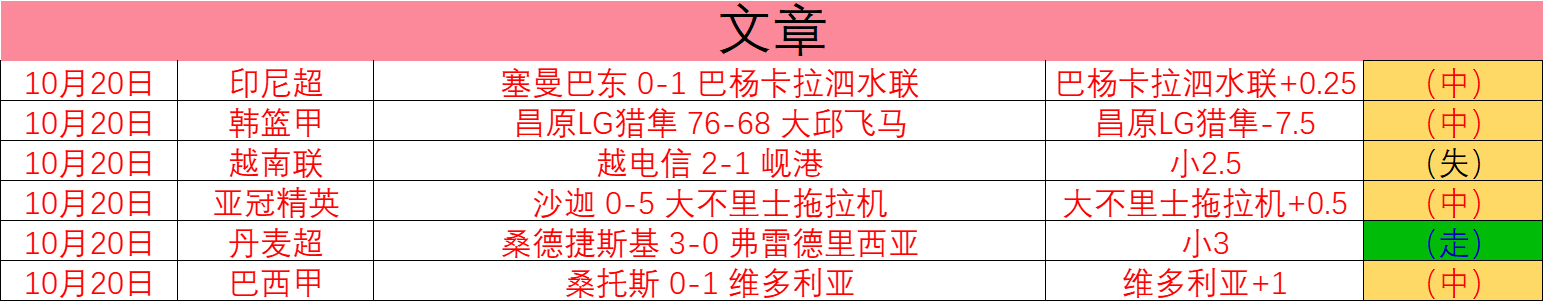 足球高光表现,8月26日到9月5日,足球是26中20,非常OK。