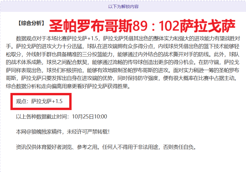 解锁内容包括:综合大数据分析+分解赛事走向+比赛建议+作者观点数据