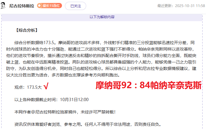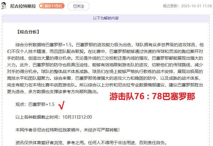 解锁内容包括:综合分析+比赛建议(数据观点+附加观点)