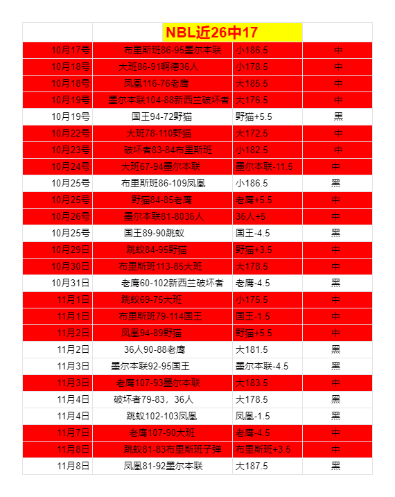 新西兰破坏者本赛季的战绩为 3 胜 8 负,,目前在 NBL 联赛积分榜上排名靠后。上一场面对36人,第四节前面6分钟就罚球得一分,球队经常出现这样断电得问题,新西兰破坏者强调 “防守转换+外线快速出手” 的进攻体系,以杰克逊?卡特赖特控场为核心。但球队存在外线命中率波动较大、客场快攻得分率较低等问题。卡特赖特:他是球队的关键人物,在得分、助攻等方面表现突出。在身高是硬伤,门内加:是球队内线的重要支柱,场均可得 16.8 分 8.1 个篮板 1.8次助攻 0.3 次盖帽,投篮命中率为 50.5%。他在篮下的护筐能力和篮板球争抢上都有着出色的表现,为球队的防线提供了坚实的保障。不过这球队发挥不稳定,都是看临场发挥。