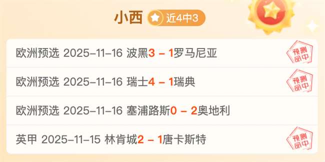 战绩回顾:近4胜3!状态逐渐回归!今日带来一场擅长的欧预赛的比赛,加油,开启新的连胜,冲冲冲!