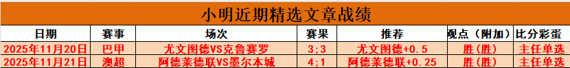 【上期回顾】早场澳超阿德莱德联成功拿下,文章2连胜;赞赏暂停,赞赏近4胜3。周六比赛质量不错,趁状态好,出击2场早场澳超,加油!