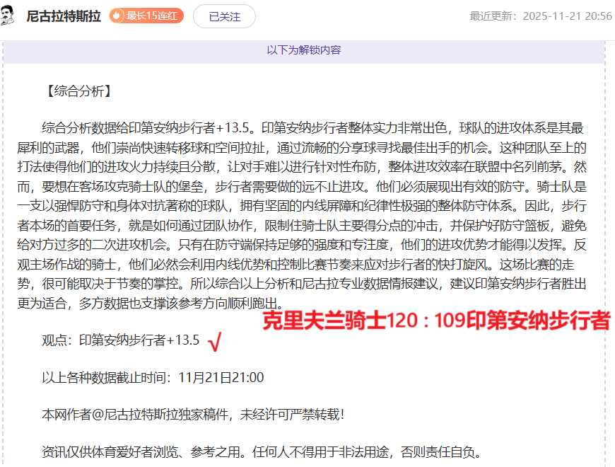 解锁内容包括:综合分析+比赛建议(数据观点+附加观点)