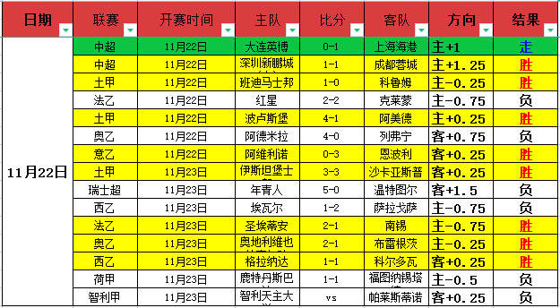 昨天表现出色,整体拿下15胜8走1净+2!昨天数据中,中超的表现非常的出色,2场都顺利打出,非常的给力!土甲的表现则是非常的炸裂,3场全部完美的打出,非常的精彩!法乙、西乙和奥乙都是一胜一负表现平稳!