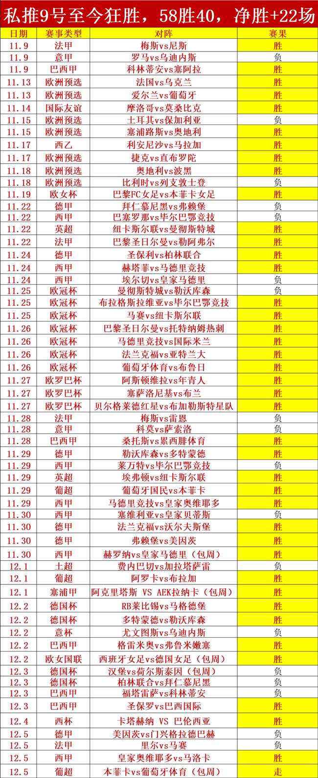 2、昨天私稳定,4场失2,私推从9号至今狂胜了大半个月,目前私推共拿下58胜40的巅峰成绩,净增+22场。