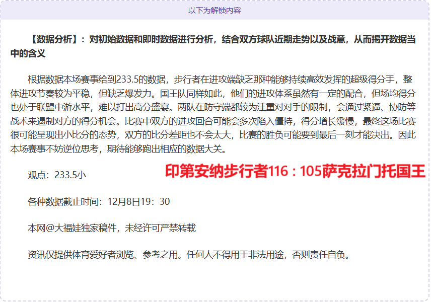 【基本面分析】:包括双方球队状态、阵中情况的多项数据分析