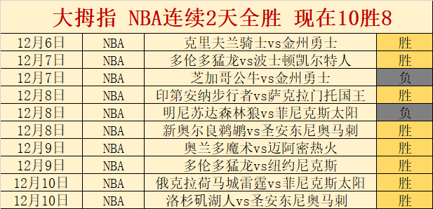 NBA连续2天全胜,近10胜6,NBA发挥得很好。昨天5胜3,连胜5天,近24胜16,胜+8,状态很好,疯狂取胜时刻再度降临
