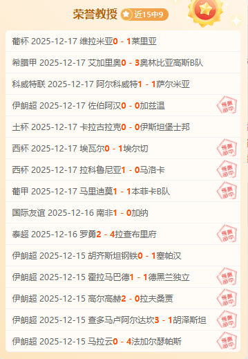 15胜9,表现持续出色!最高打下14连胜的表现已见证实力。各线赛事都能保证清晰的解读思路与靠谱的选择方向!截至昨天荣誉教授已经有4395场解读经验,今天继续精选5场,多元化的赛事系列,以更高连胜胜利率绩迎接5000场记录来临,关注荣誉教授,成为荣誉教授的好伙伴!