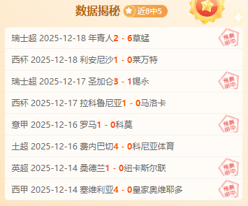 近期胜负交替,成绩8胜5,状态相对稳定。祝大家生活如足球赛场般精彩,好运相伴,胜利连连!数据揭秘保持长胜心态,看到的朋友不要再犹豫了。