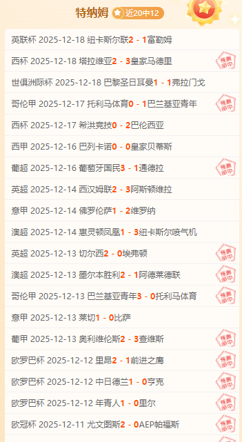 【战绩回顾】目前近20场胜12场。特纳姆将凭借多年深耕足球领域的专业视角,结合独家赛事分析方法,深度解析赛果走向。诚邀各位球迷朋友共同交流探讨,让我们携手冲击高效战绩!