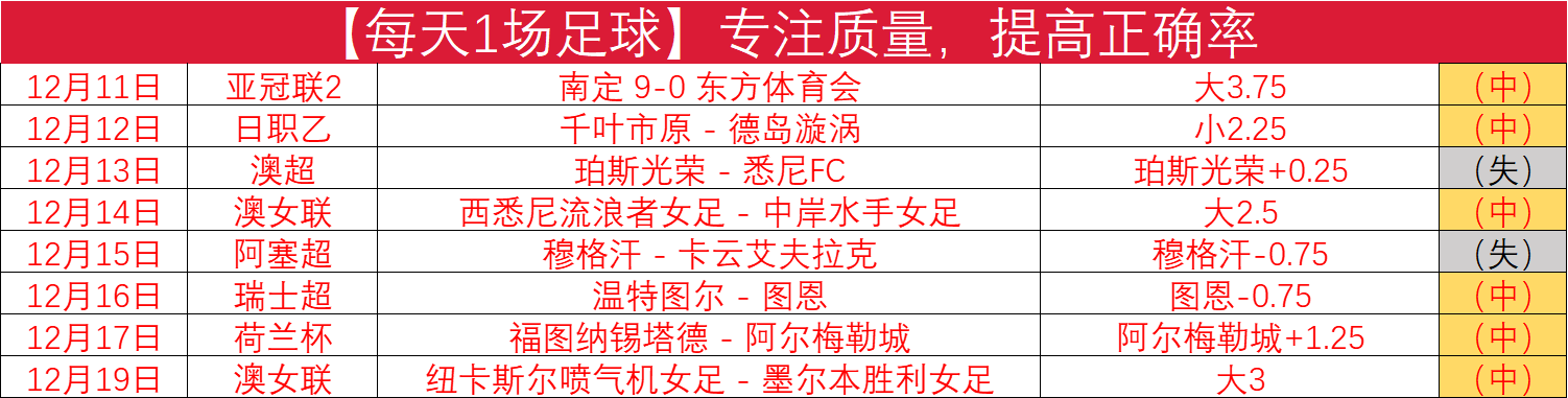 【每天1场足球】8中6,专注质量,提高正确率