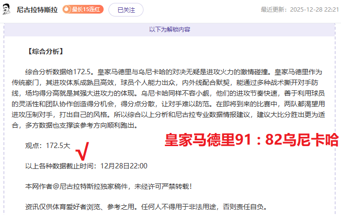 解锁内容包括:综合分析+比赛建议(数据观点+附加观点)