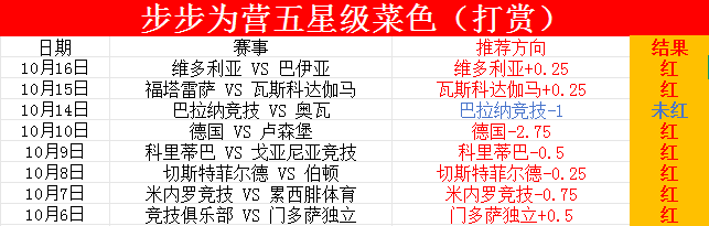 昨天4场比赛继续2胜1走1负,目前近7中5!今天继续带领大家收获成功;五星级菜单方面,昨天维多利亚以2-1击败巴伊亚,维多利亚+0.25顺利命中!想要获得五星级菜单的朋友可以在打赏文章下方点击打赏88球币即可获得推送。