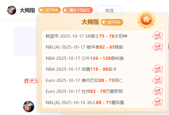 今天早场全胜,昨天5胜4,精彩拿下了7胜6!