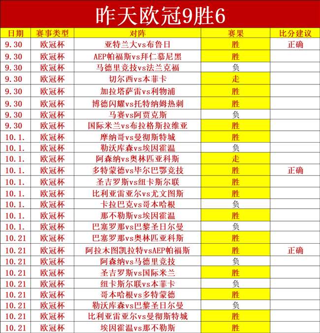 一、战绩回顾:昨天欧冠表现出色,整体拿下9胜6的佳绩,私推2场大获全胜,解锁5胜3,欧冠杯今天继续乘胜追击。