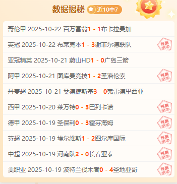 目前成绩10胜7。祝大家生活如足球赛场般精彩,好运相伴,胜利连连!数据揭秘保持长胜心态,看到的朋友不要再犹豫了。