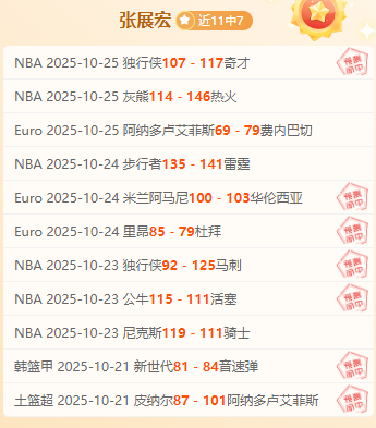 昨日取得一场NBA胜利,近11胜7。张展宏继续深挖数据,不吹不擂真实成绩有目共睹。继续为大家送上高质量和专业的赛事理解,敬请大家关注!