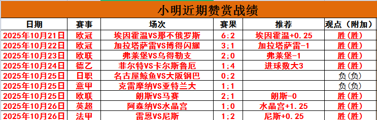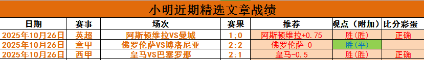 【上期回顾】昨整体10中6,文章8中4,皇马、维拉、莱万特全出,意甲平。赞赏2场全胜,水晶宫+尼斯全出,赞赏近9胜7!昨新推出的《王牌赛事》2场全对,上周文章净增14场,赞赏净增5场,发挥超神!本周继续努力。