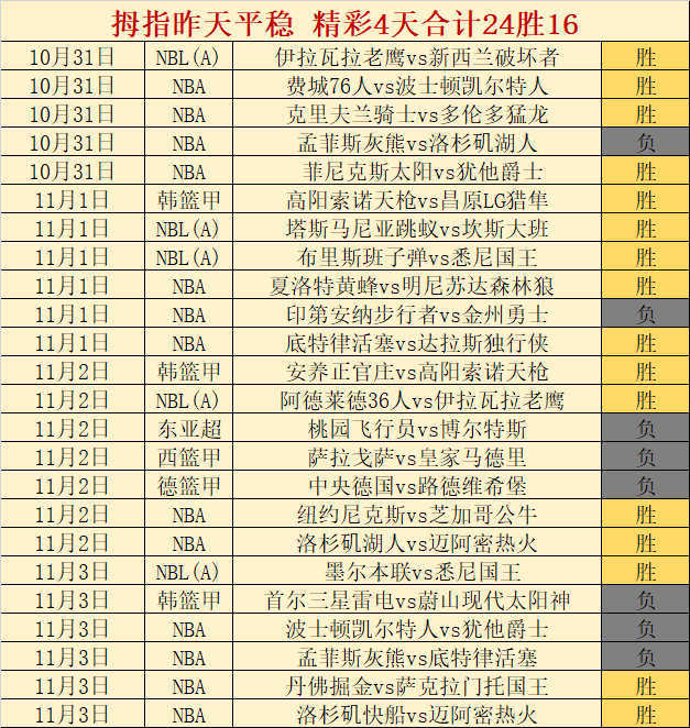 昨天平稳发挥,合计24胜16,胜+8,当前状态值得肯定的!