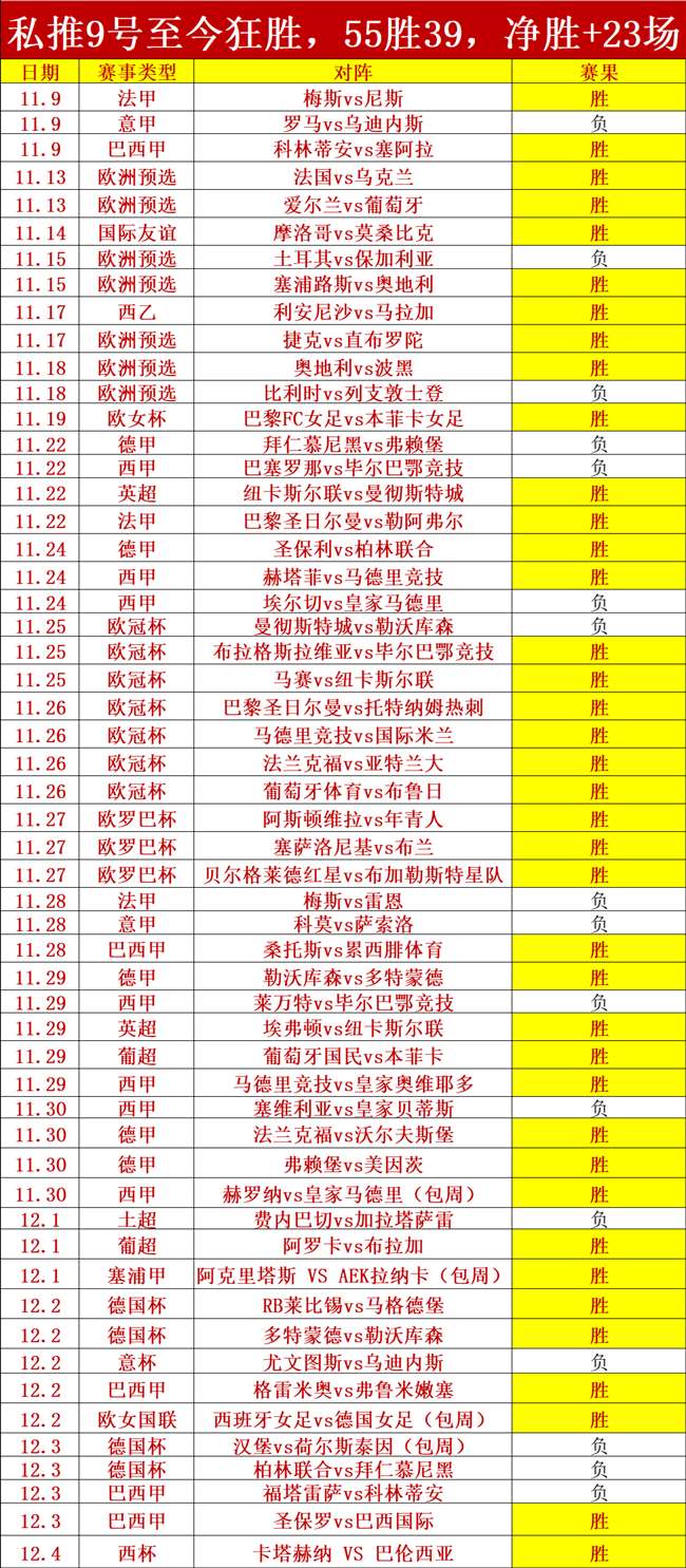 2、昨天私推再次拿下,私推从9号至今狂胜了大半个月,目前私推共拿下55胜39的巅峰成绩,净增+23场。