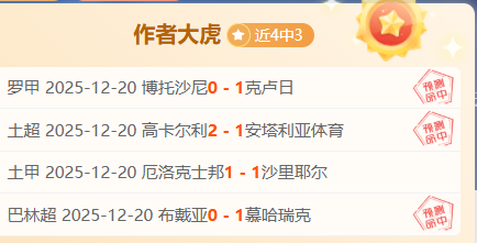 成绩回顾:近4中3!火热状态继续,成绩维持在稳定水平上,今天继续分享五场信心比赛给大伙,希望大家持续关注作者大虎。