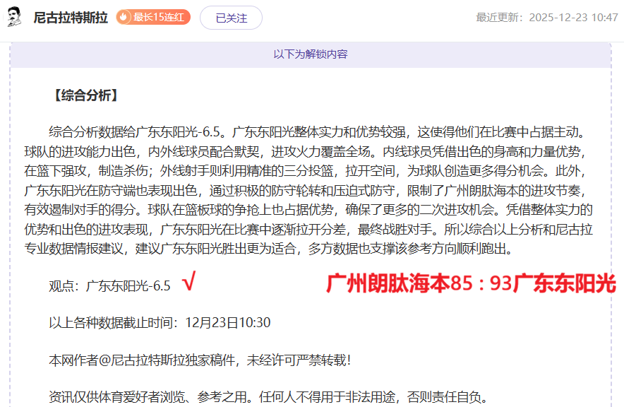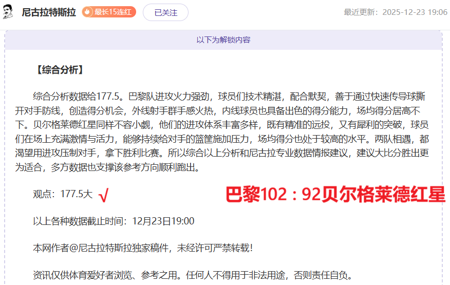 解锁内容包括:综合分析+比赛建议(数据观点+附加观点)