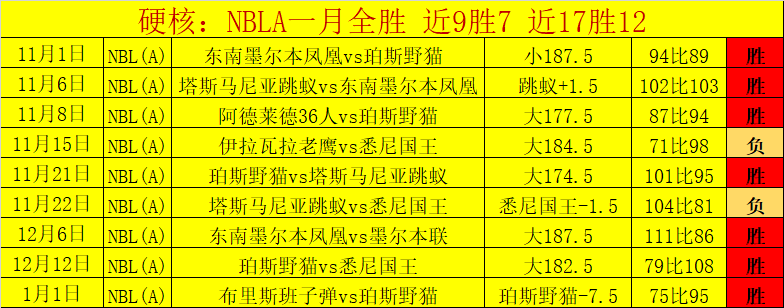 NBLA在一月全胜发挥,近9场胜7场,近17胜12,长期精彩发挥的赛事