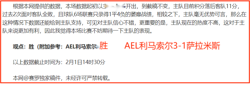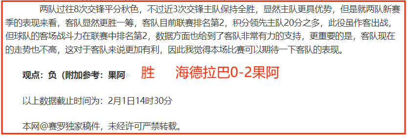 (温馨提示:观点回顾为已完场赛事的统计,并不能代表未来的观点预测结果走势,观点仅为其个人意见,与平.台无关。资讯仅供体育爱好者浏览,并不构成购.彩建议,任何人不得用于非法用途,请广大用户理性消费。)