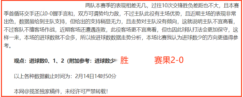 (温馨提示:观点回顾为已完场赛事的统计,并不能代表未来的观点预测结果走势,观点仅为其个人意见,与平.台无关。资讯仅供体育爱好者浏览,并不构成购.彩建议,任何人不得用于非法用途,请广大用户理性消费。)