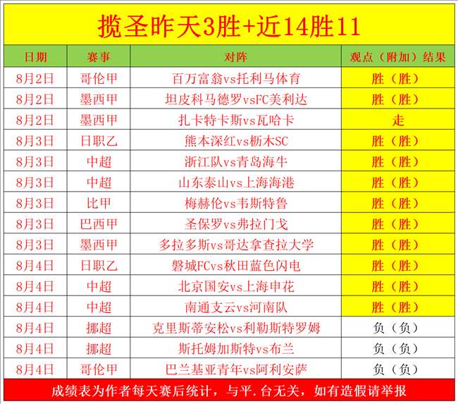 成绩回顾:昨天发挥稳定,拿下3胜,遗憾的是最后3场比赛没能顺利打出,止步11连胜,不过没关系,小小失误对笔者影响不大,笔者状态依旧!而且值得称赞的是昨天的中超再次大获全胜,中超近期取得8胜7的佳绩,目前5连胜!还有哥伦甲近期14场比赛仅失3场,命中率高达75%!接下来重点分析2场奥运男足的比赛,对于奥运男足还是很有把握的,奥运男足近期取得了5胜4的佳绩!今天我们再接再厉!